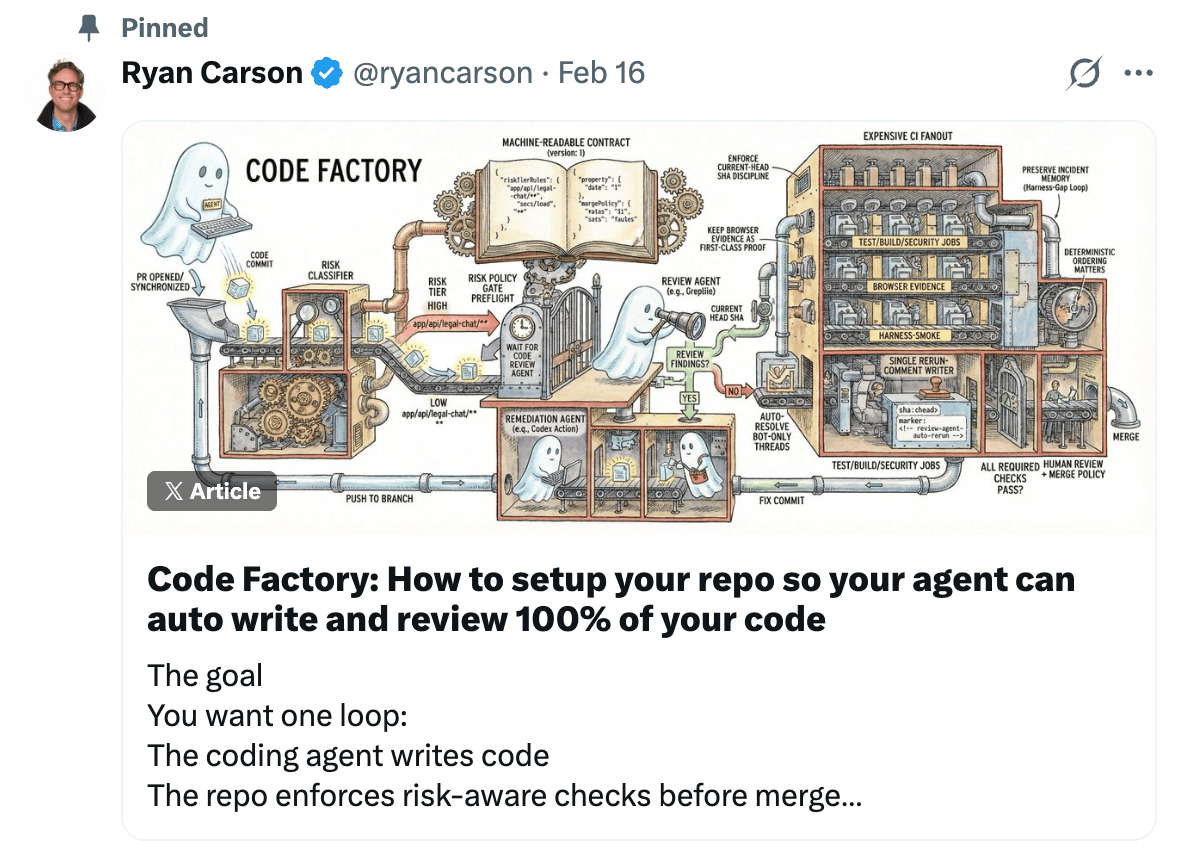 We spent a big chunk of the show today geeking out over agentic workflows. Ryan Carson went incredibly viral on X again this week with a phenomenal deep-dive on establishing a “Code Factory.” If you are still just chatting with models and manually copying code back into your IDE, you are doing it wrong.