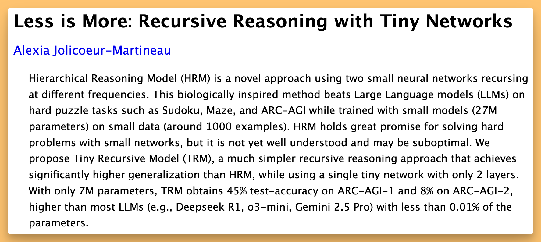 Samsung’s TRM: Is This 7M Parameter Model... Magic? (X, Blog, arXiv)