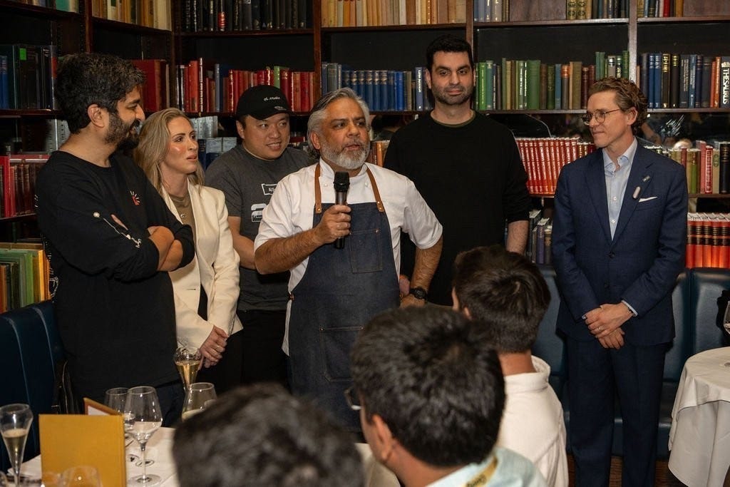 And this was just our table, other tables were as stacked as this one, and all were discussing their job, their Claws, their troubles sleeping, the dopamine rush from getting agents to do the task “just right”, the ways to handle context drift, Claude Mythos, MCPs, whether we even need to look at code anymore... while enjoying a very tasty Indian dinner.