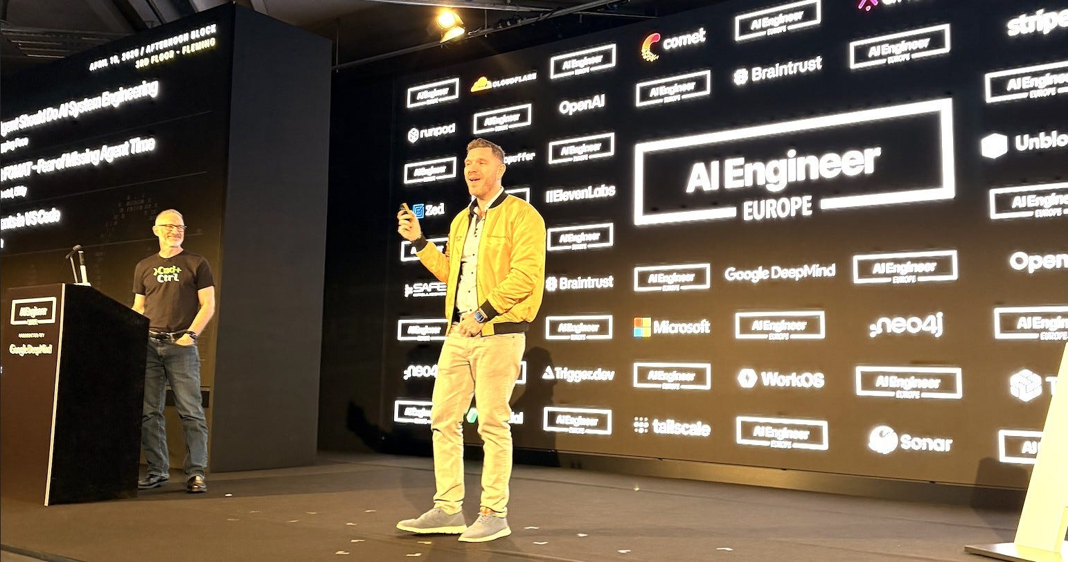 And then we got the author of the L of the Z/L Continuum - Ryan Lopopolo - who opened with the brilliant line “hey, I’m Ryan, I work at OpenAI and I’m a Token Billionaire, and I want you all to be as well”. Ryan was likely the most AGI pilled speaker of the bunch, and having spoken to him the night before, I understand why. You should definitely watch that talk, where he says we need to think bigger, coding is either solved or will be solved very soon. He also says that “code is a liability” and that we should focus on tests, evals, fixing our harnesses and making sure our every time an agent does an “oopsie”, it’s the prompts fault and we need to fix the prompt.