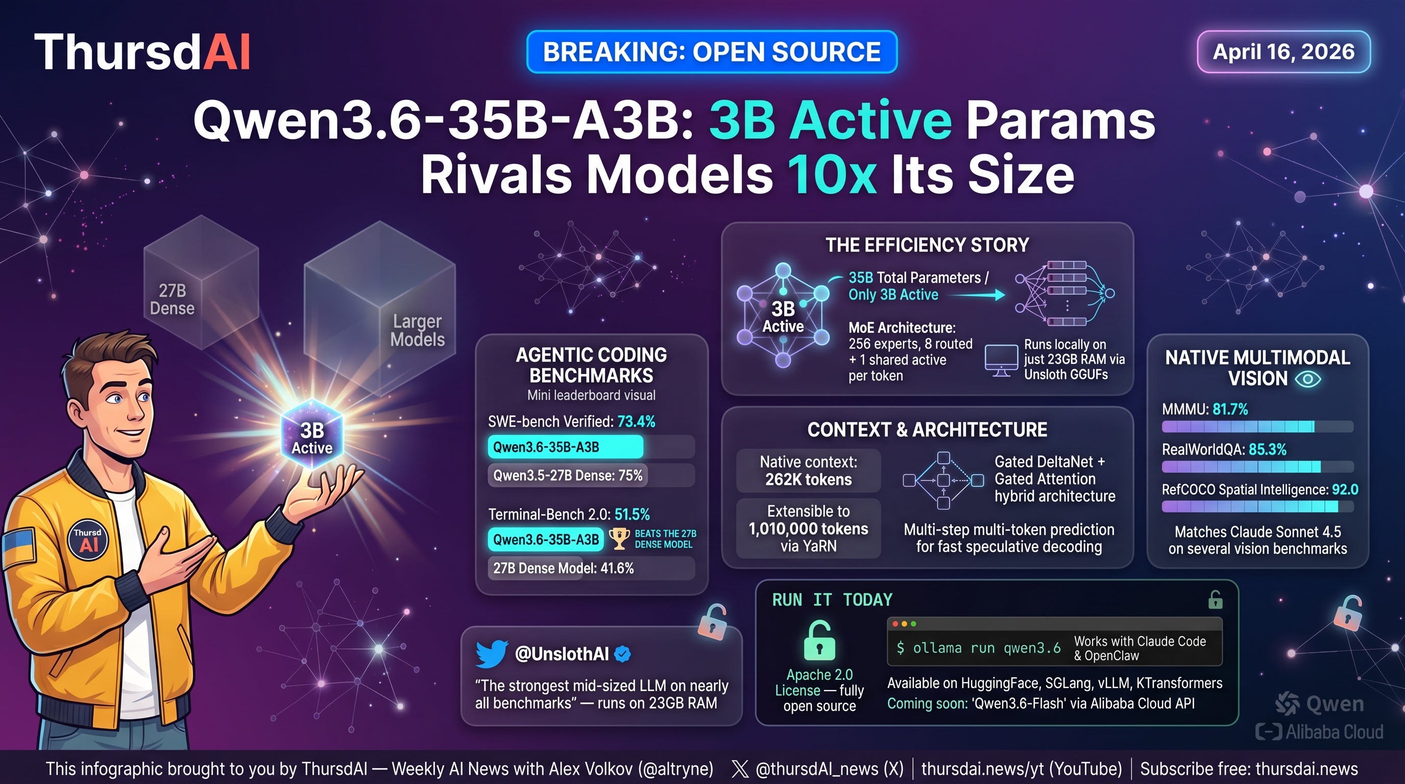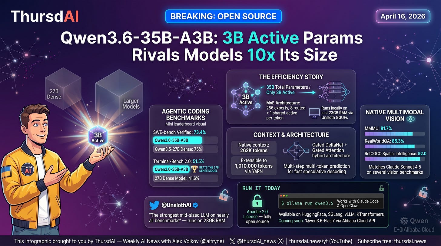 Alibaba is back - Qwen 3.6 is Apache 2.0 35B with 3B active parameters (X, HF, Blog)