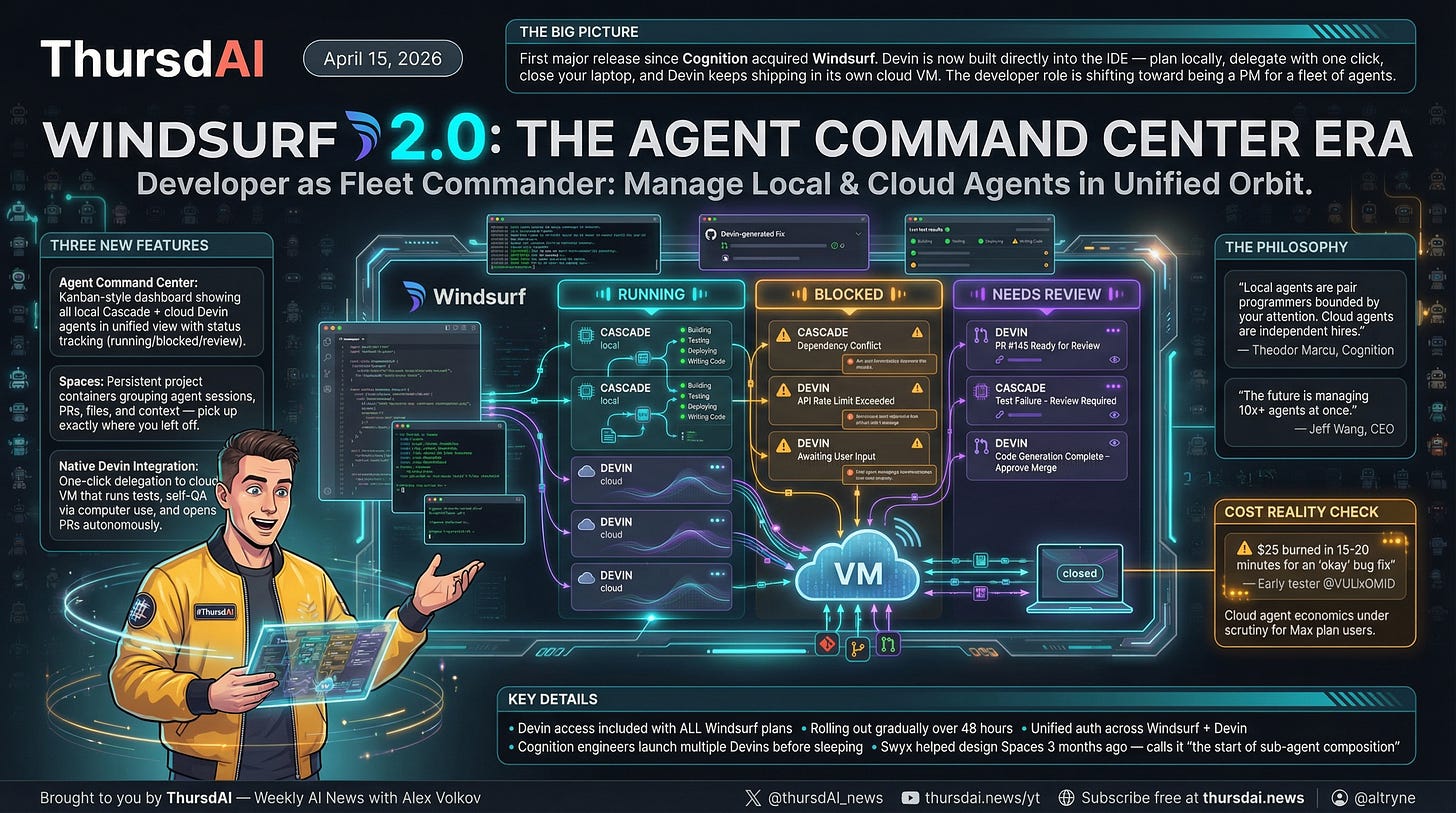 The first big post-Cognition-acquisition move for Windsurf dropped this week, and I got to chat with Theodor Marcu from Cognition about it on the show. The headline: Windsurf 2.0 brings an Agent Command Center; think Kanban-style mission control for all your agents, plus native Devin integration baked right into the IDE, and Spaces (persistent project containers that group your agent sessions, PRs, files, and context).