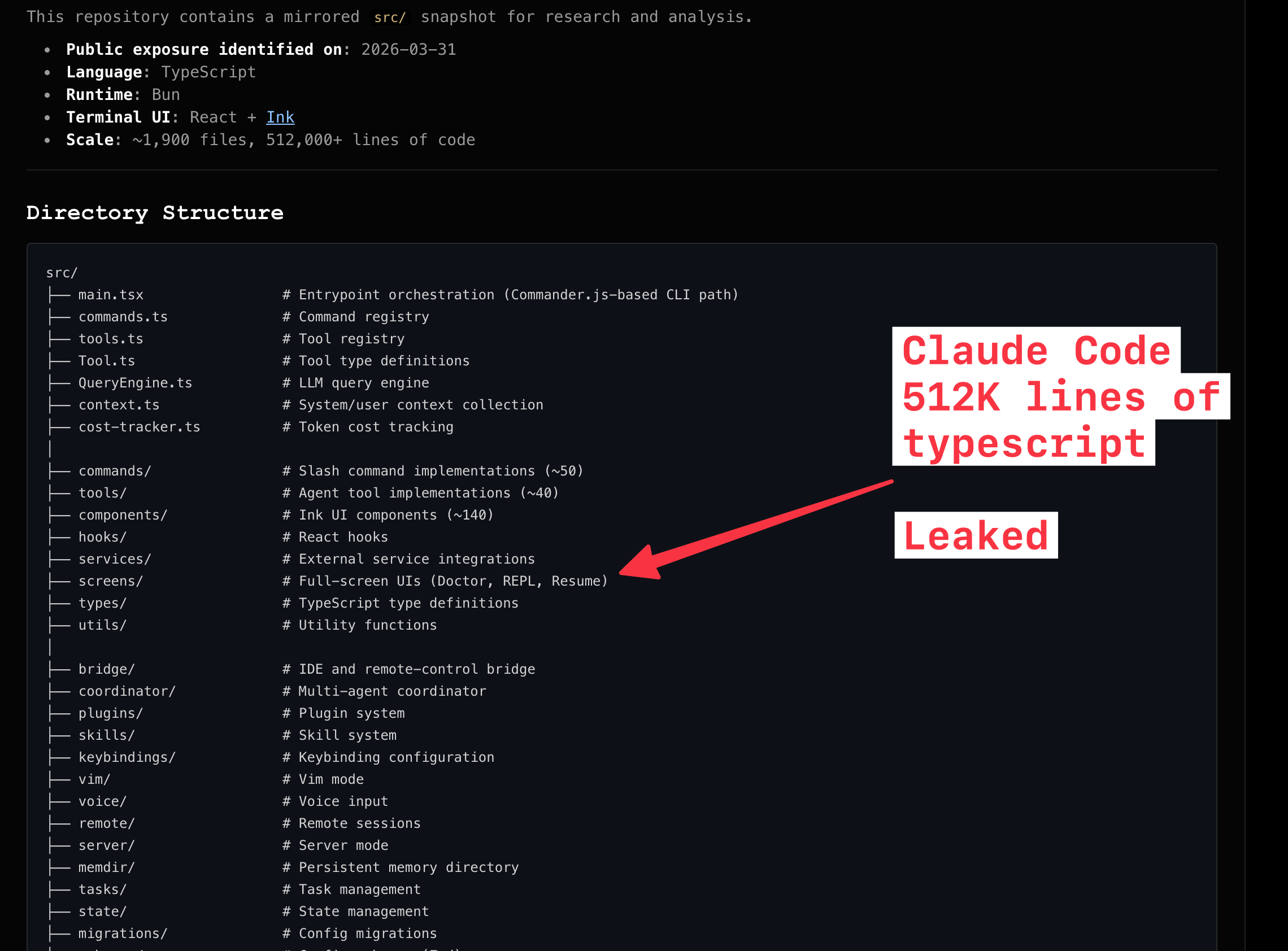 Claude Code’s entire 512K-line source code accidentally leaked via npm — revealing KAIROS daemon, Undercover Mode, Buddy System, anti-distillation protections, and unreleased model references (Alex’s thread, Fried_rice’s discovery, VentureBeat)