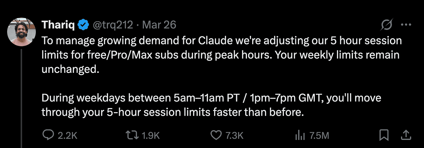 My take is simple: Anthropic has one of the best models in the world, maybe the best personality plus coding stack in some situations, and they are squandering a chunk of goodwill by not being much more explicit about decreased limits, caching bugs, routing, and usage behavior. Nothing else to add here, really bad DevEx, people can handle bad news. They hate opaque bad news.