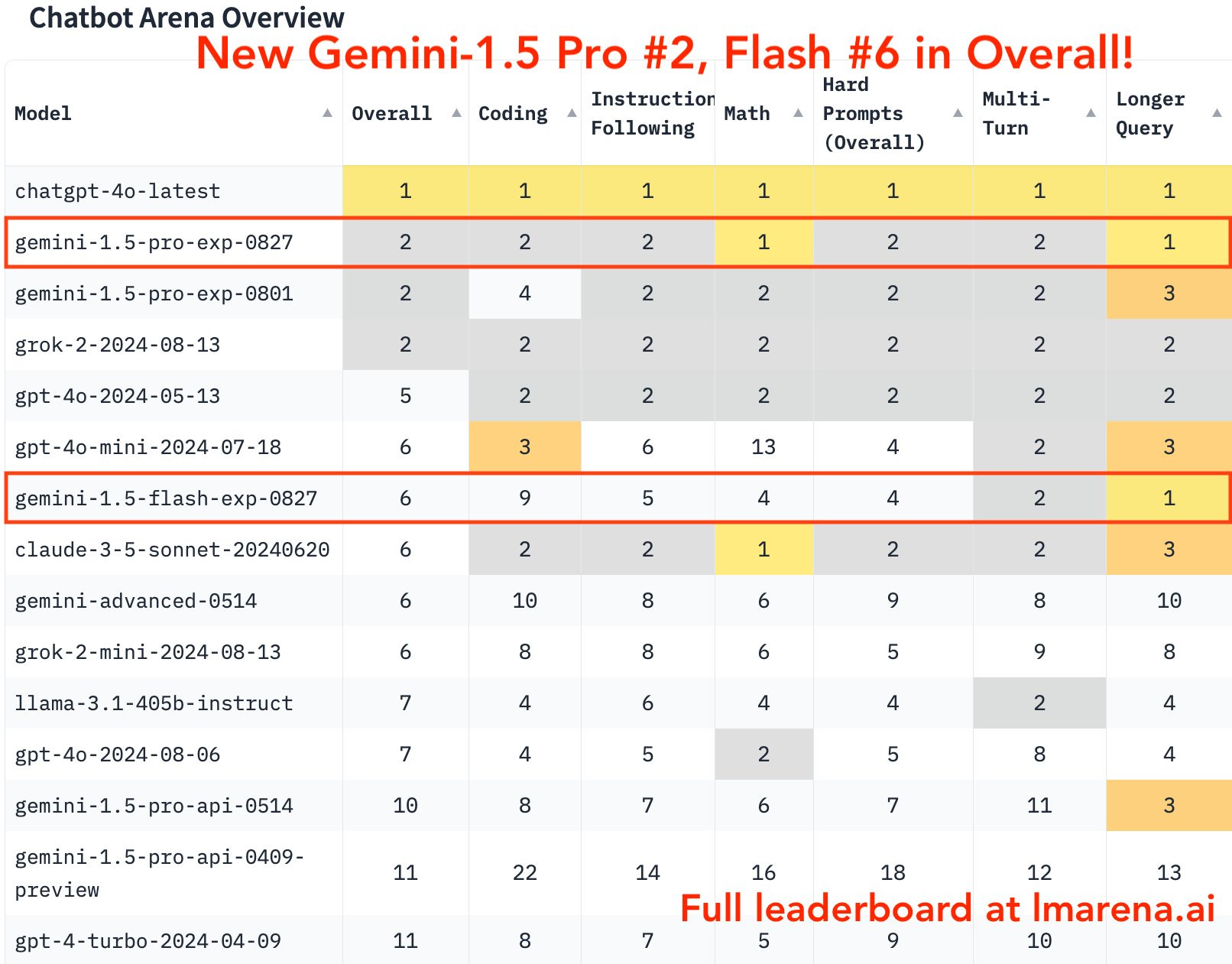 Sensing a disturbance in the AI force (probably from that Cerebras bombshell), Google rolled out a series of Gemini updates, including a new experimental Gemini 1.5 Pro (0827) with sharper coding skills and logical reasoning. According to LMSys, itโs already nipping at the heels of ChatGPT 4o and is number 2!
