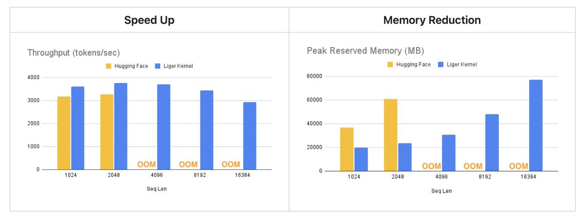 This absolutely bonkers improvement in training LLMs, now works smoothly with Flash Attention, PyTorch FSDP and DeepSpeed. If you want to read more about the implementation of the triton kernels, you can see a deep dive here, I just wanted to bring this to your attention, even if you're not technical, because efficiency jumps like these are happening all the time. We are used to seeing them in capabilities / intelligence, but they are also happening on the algorithmic/training/hardware side, and it's incredible to see!