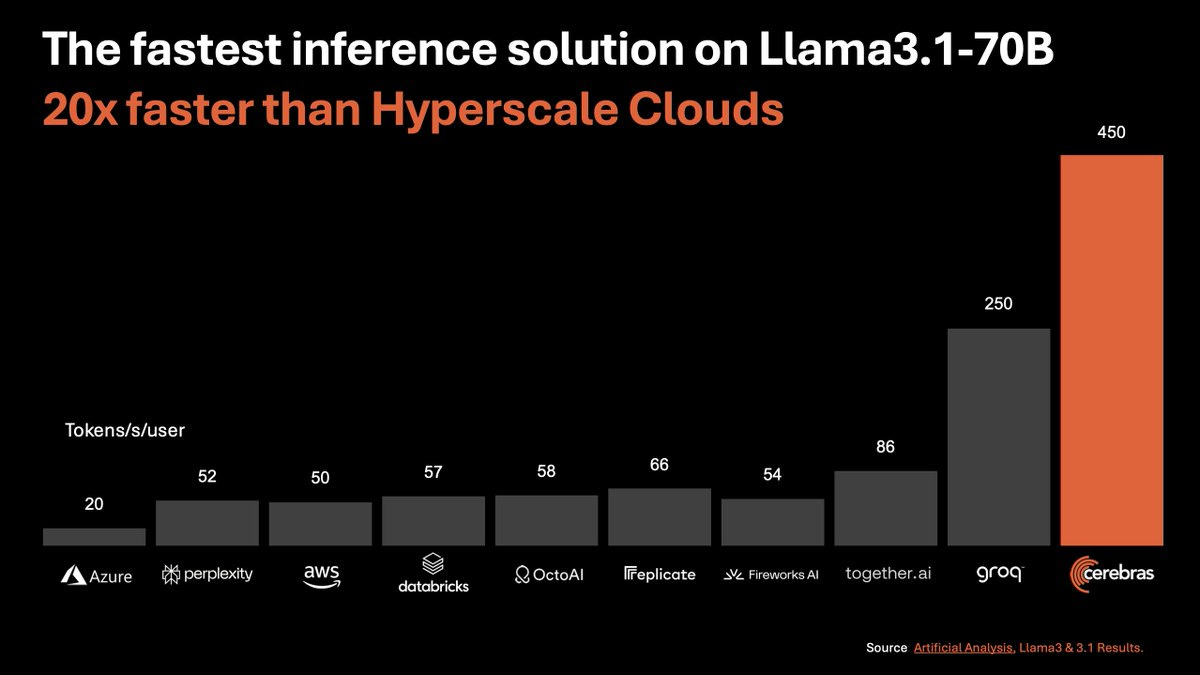 Cerebras launches the fastest AI inference - 447t/s LLama 3.1 70B (X, Blog, Try It)