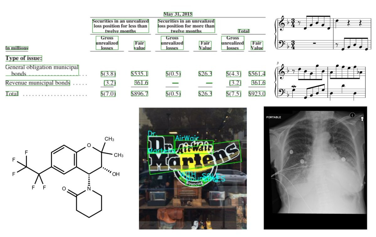 They claim to achieve SOTA on chemical formula recognition, music score recognition, spatial reasoning, and chest X-ray report generation!