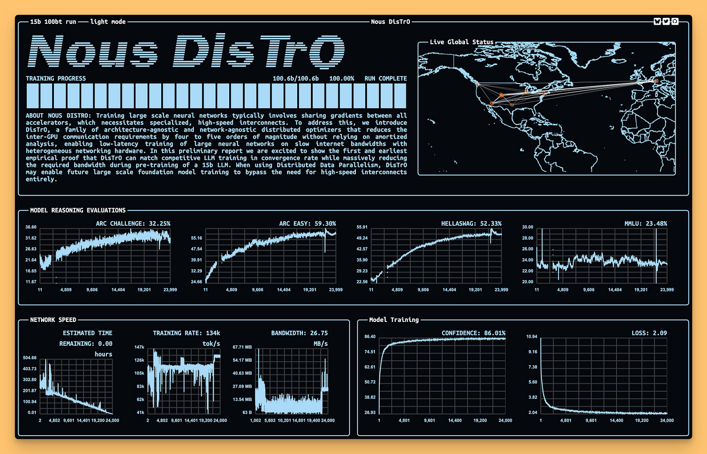 We’ve talked about decentralized training before, but the folks at Nous Research are making it a reality at scale. This week, Nous Research wrapped up the training of a new 15B-parameter LLM—codename “Psyche”—using a fully decentralized approach called “Nous DiStRo.” Picture a massive AI model trained not in a single data center, but across GPU nodes scattered around the globe. According to Alex Volkov (host of ThursdAI), “This is crazy: they’re literally training a 15B param model using GPUs from multiple companies and individuals, and it’s working as well as centralized runs.”
