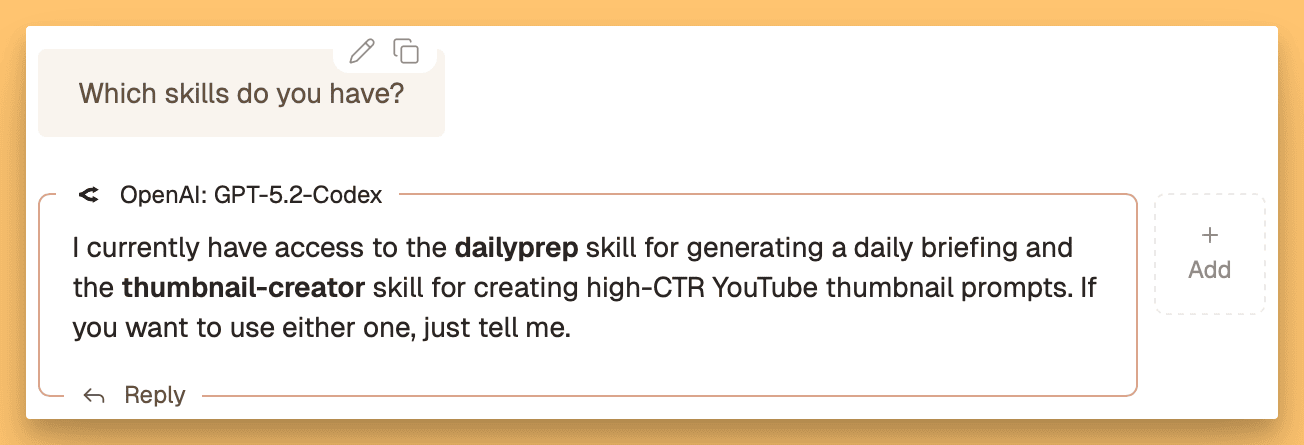 I was resistant to skills at first, mostly because I wanted them inside my chat interface and not just in CLI tools. And I wasn’t subscribed to Claude for a while. Then I realized I could add skill support directly to Chorus, the open‑source multi‑model chat app, and I used Claude Code plus Ralph loops to vibe code it in a few hours. Now I can run skills with GPT‑5.2 Codex, Claude Opus, and Gemini from the same chat interface. That was my “I know kung fu” moment.