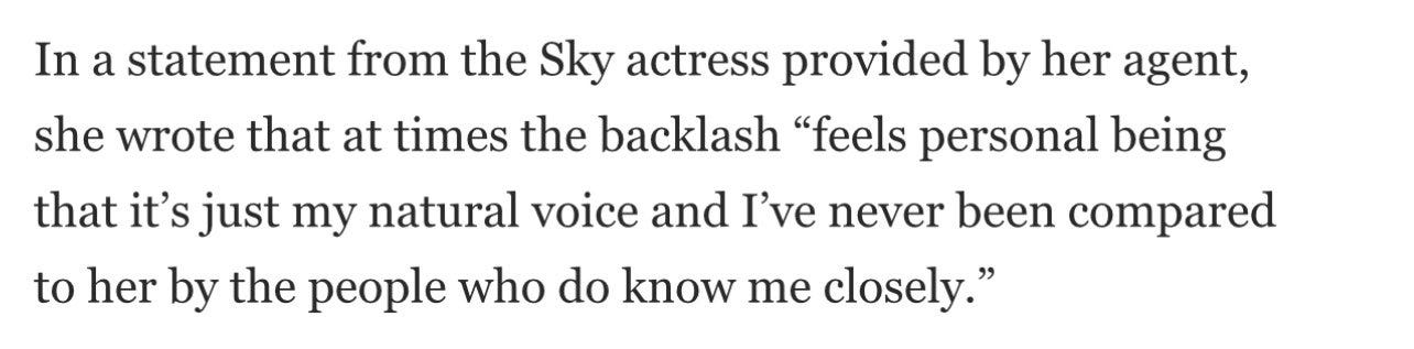 Now, whether or not there's legal precedent here, given that Sam Altman reached out to Scarlet twice, including once a few days before the event, I won't speculate, but for me, personally, not only Sky doesn't sound like ScarJo, it was my favorite voice even before they demoed it, and I'm really sad that it's paused, and I think it's unfair to the actress who was hired for her voice. See her own statement: