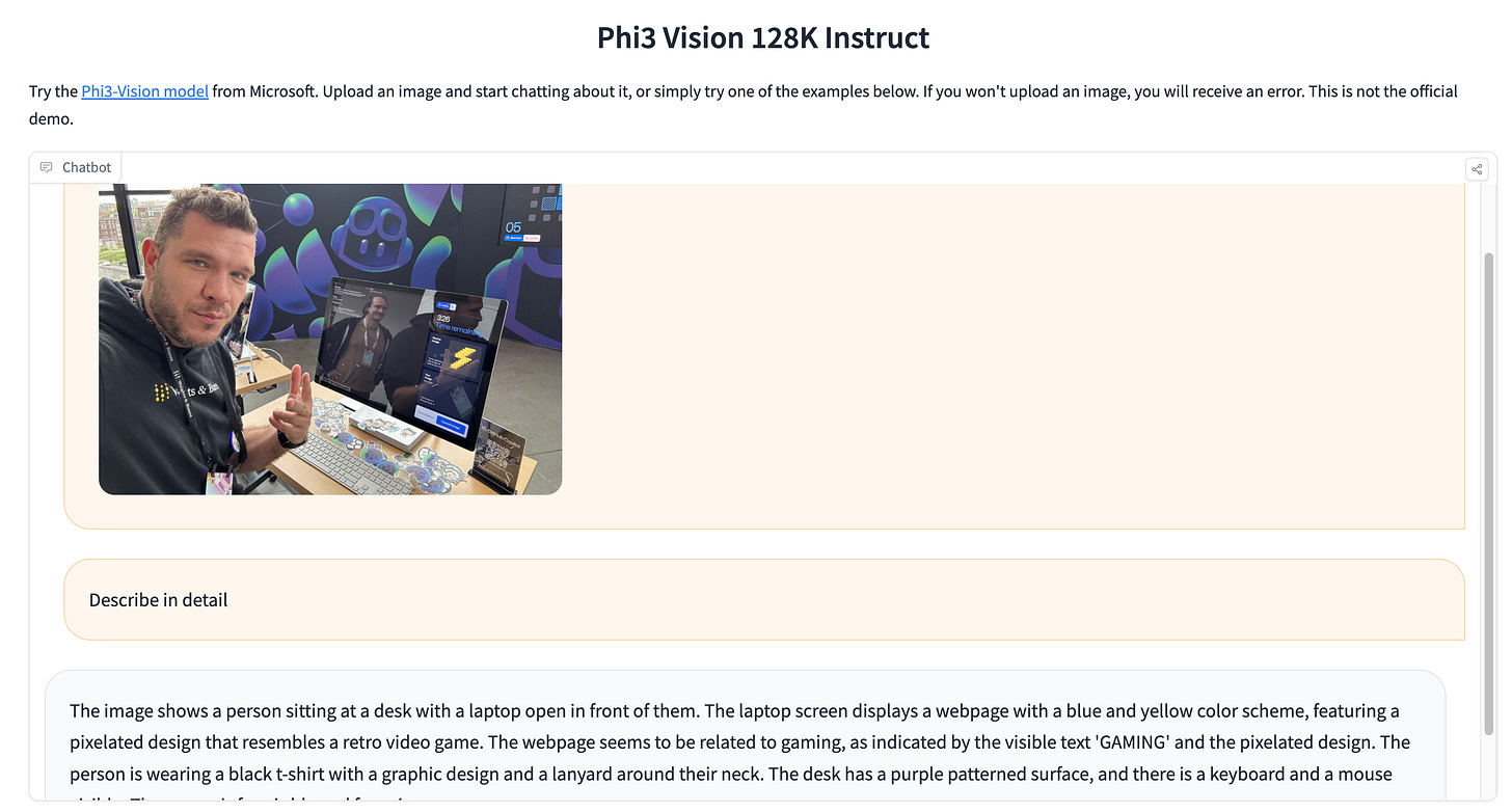 In addition to Phi-3 small and Phi-3 Medium, Microsoft released Phi-3 mini with vision, which does an incredible job understanding text and images! (You can demo it right here)