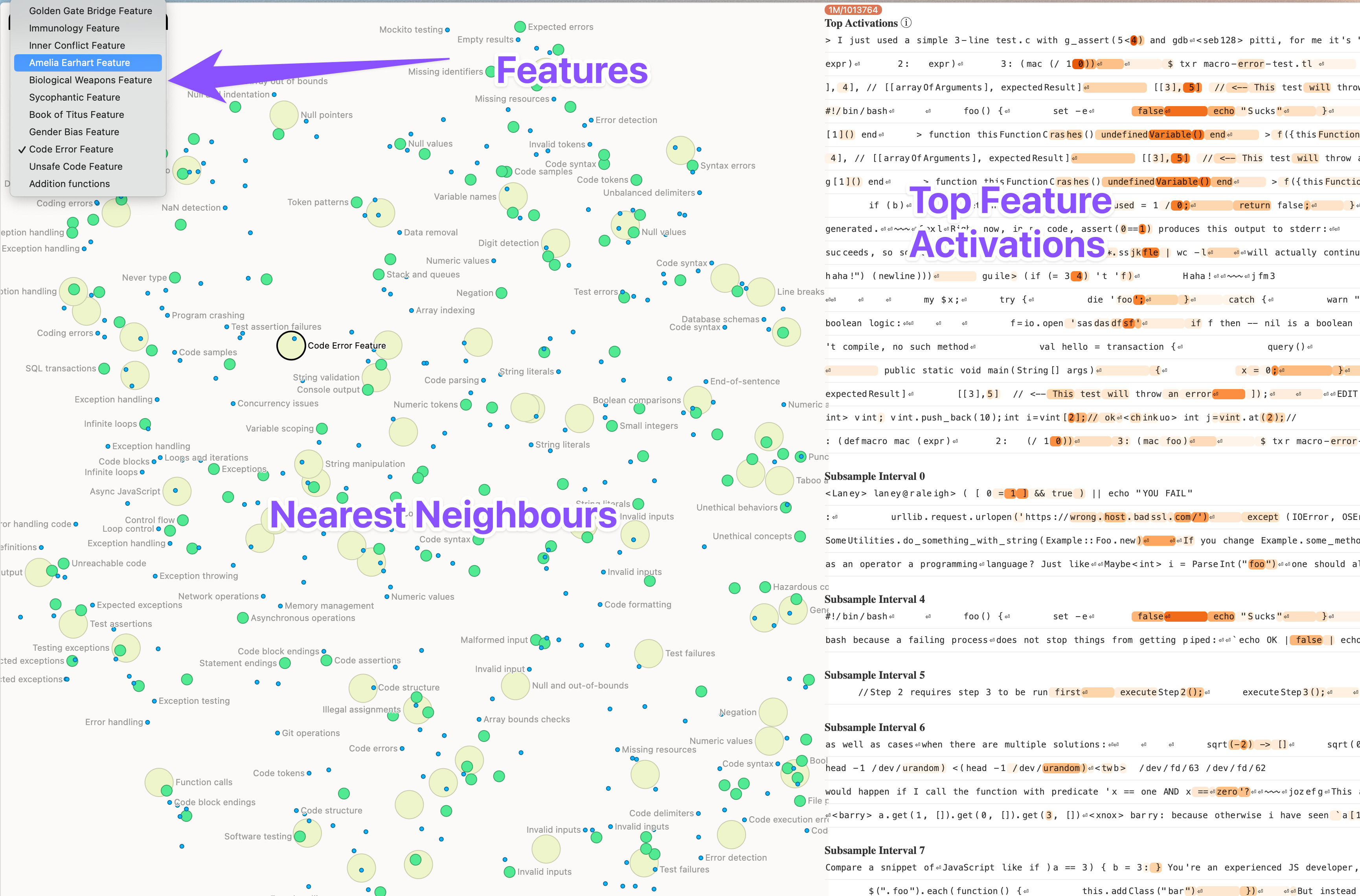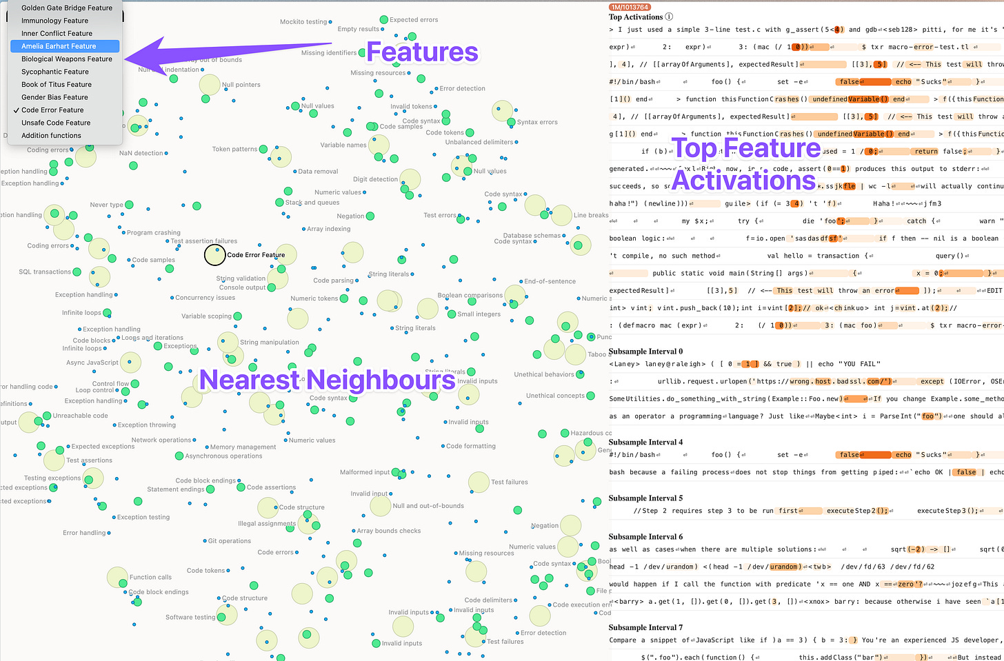 In the work they highlighted features such as "deception", "bad code" and even a funny one called "Golden Gate bridge" and showed that clamping these features can affect the model outcomes.