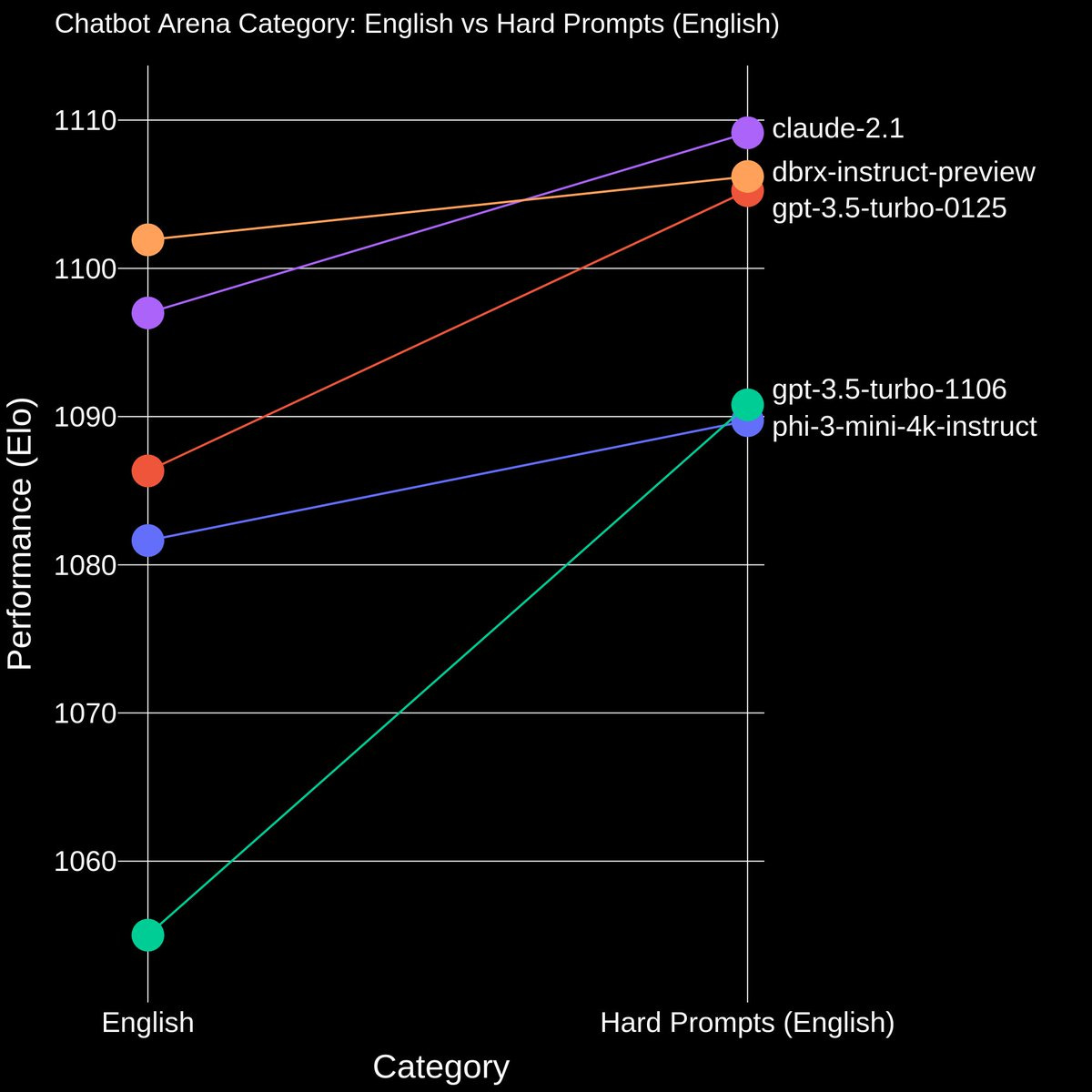 LMsys just updated their arena to include a hard prompts category (X) which select for complex, specific and knowledge based prompts and scores the models on those. Phi-3 mini actually gets a big boost in ELO ranking when filtered on hard prompts and beats GPT-3.5 😮 Can't wait to see how the small and medium versions perform on the arena.