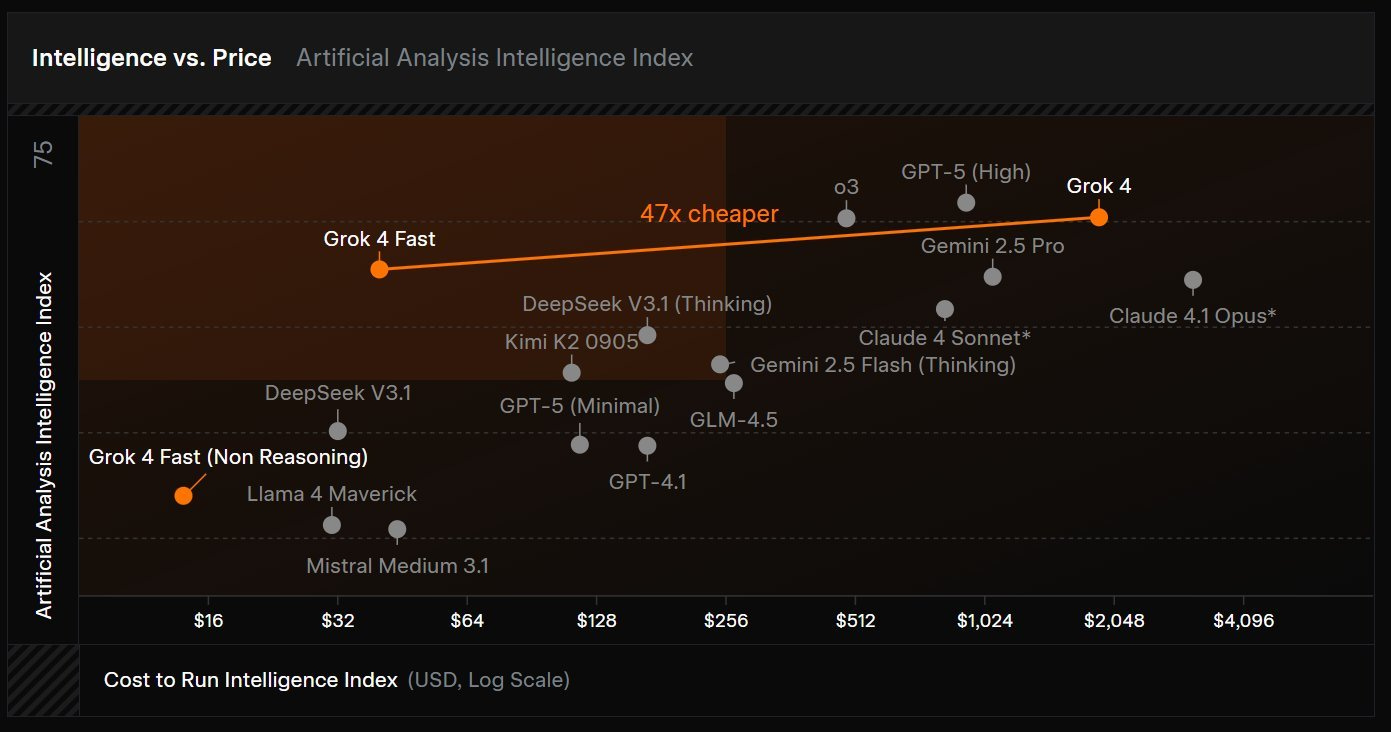 I still have my gripes about their “stealth upgrade” versioning strategy, which makes rigorous evaluation difficult, but as a practical tool, Grok‑4 Fast is incredibly powerful. It’s also surprisingly fast and cost‑effective, holding its own against other top models on benchmarks while offering a superpower that no one else has.