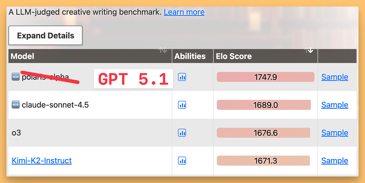 The highlight for this model is the creative writing, it was made public that this model was being tested on OpenRouter as Polaris-alpha and that one tops the eqbench creative writing benchmarks beating Sonnet 4.5 and Gemini!