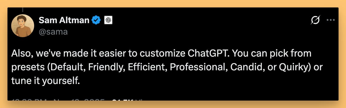 GPT‑5.1: Instant vs Thinking, and a new personality bar