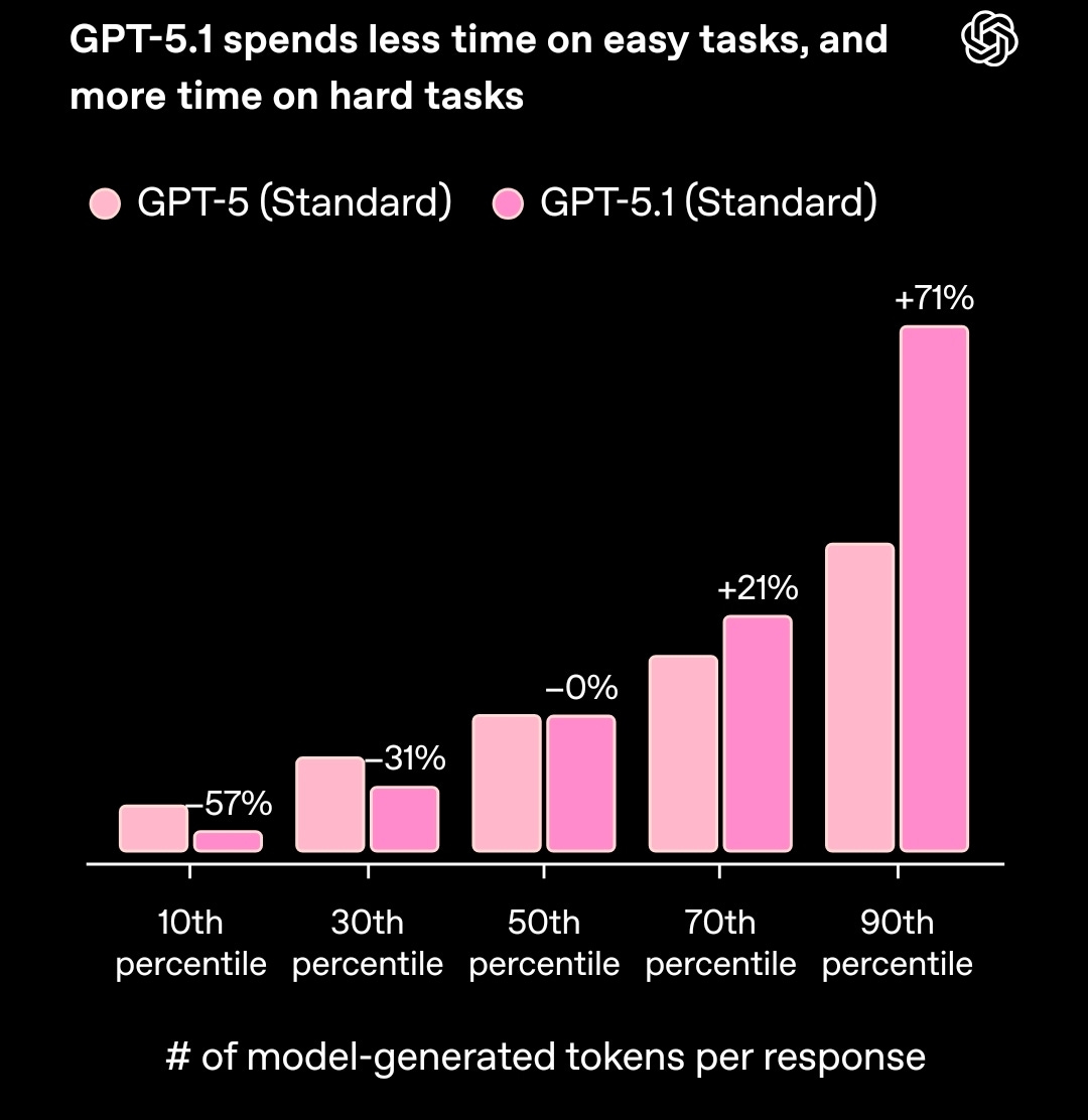 The biggest headline of the week was OpenAI shipping GPT‑5.1, and this was a hot topic of debate on the show. The update introduces two modes: “Instant” for fast, low‑compute answers, and “Thinking” for deeper reasoning on hard problems. OpenAI claims Instant mode uses 57% fewer tokens on easy tasks, while Thinking mode dedicates 71% more compute to difficult ones. This adaptive approach is a smart evolution.