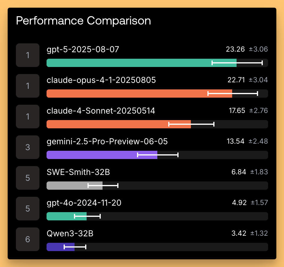 Scale dropped a stronger coding benchmark focused on multi-file edits, 100+ line changes, and large dependency graphs. On the public set, GPTâ5 (not Codex) and Claude Opus 4.1 took the top two slots; on a commercial set, Opus edged ahead. The broader takeaway: the action has clearly moved to test-time compute, persistent memory, and program-synthesis outer loops to get through larger codebases with fewer invalid edits. This aligns with what weâre seeing across ARCâAGI and SWEâbench Verified.