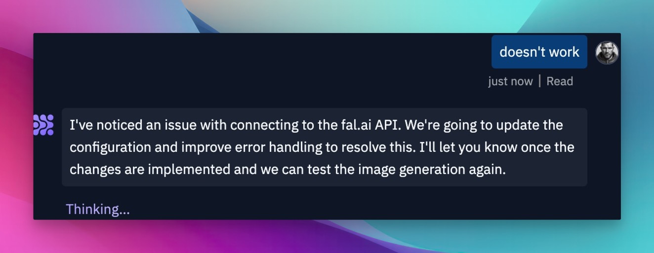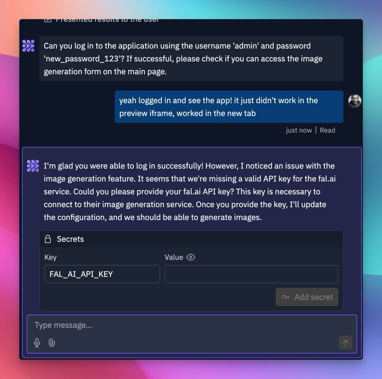 The fact that this can deploy and run the server and the frontend, detect errors, fix them, and then also provision a DB for me, provision Stripe, login buttons and everything else is quite insane.