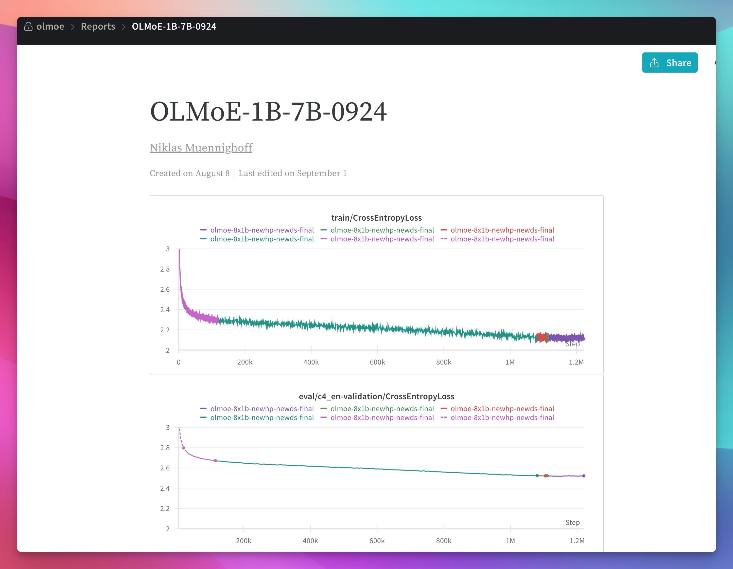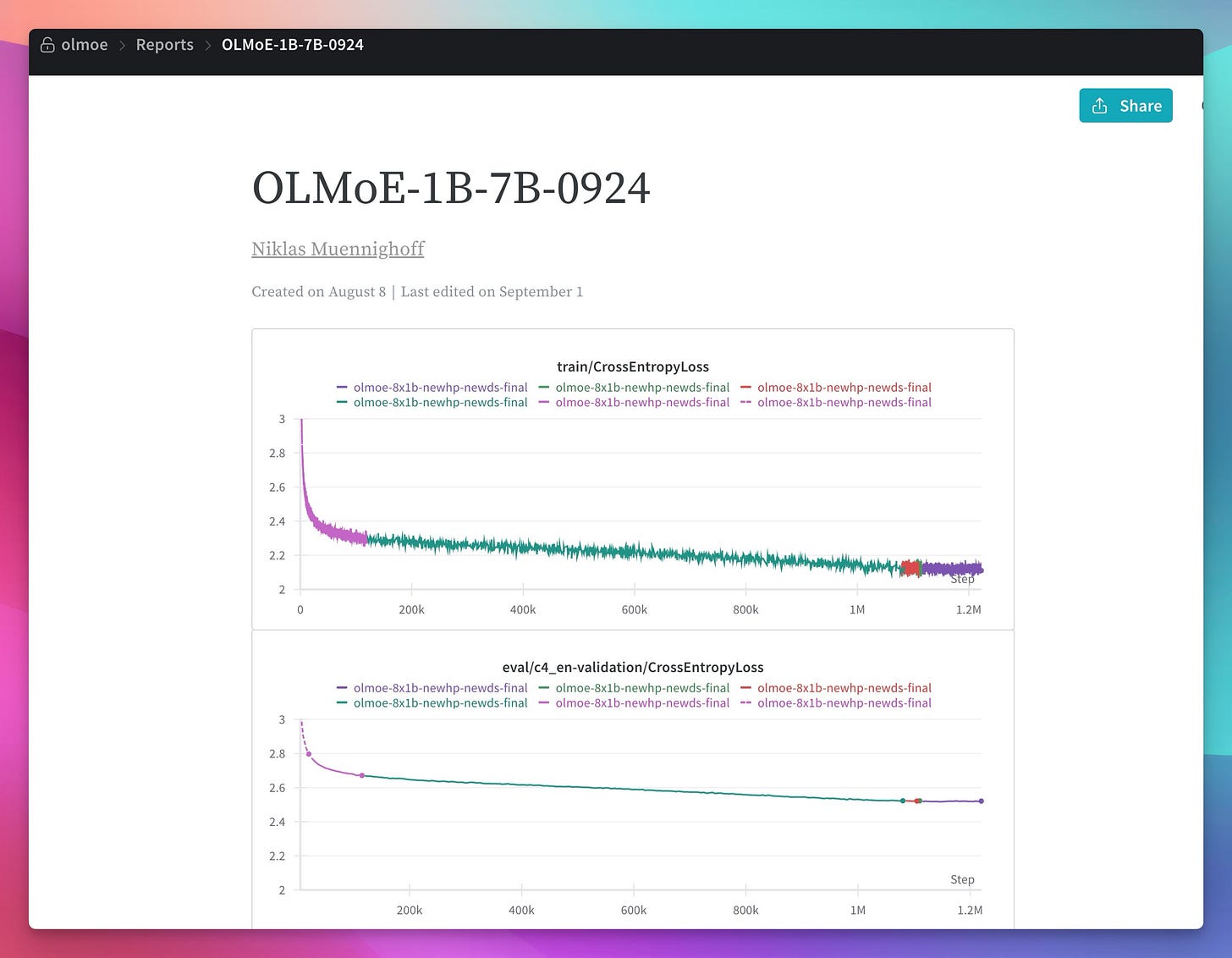 We've previously covered OLMO from Allen Institute, and back then it was obvious how much commitment they have to open source, and this week they continued on this path with the release of OLMoE, an Mixture of Experts 7B parameter model (1B active parameters), trained from scratch on 5T tokens, which was completely open sourced.